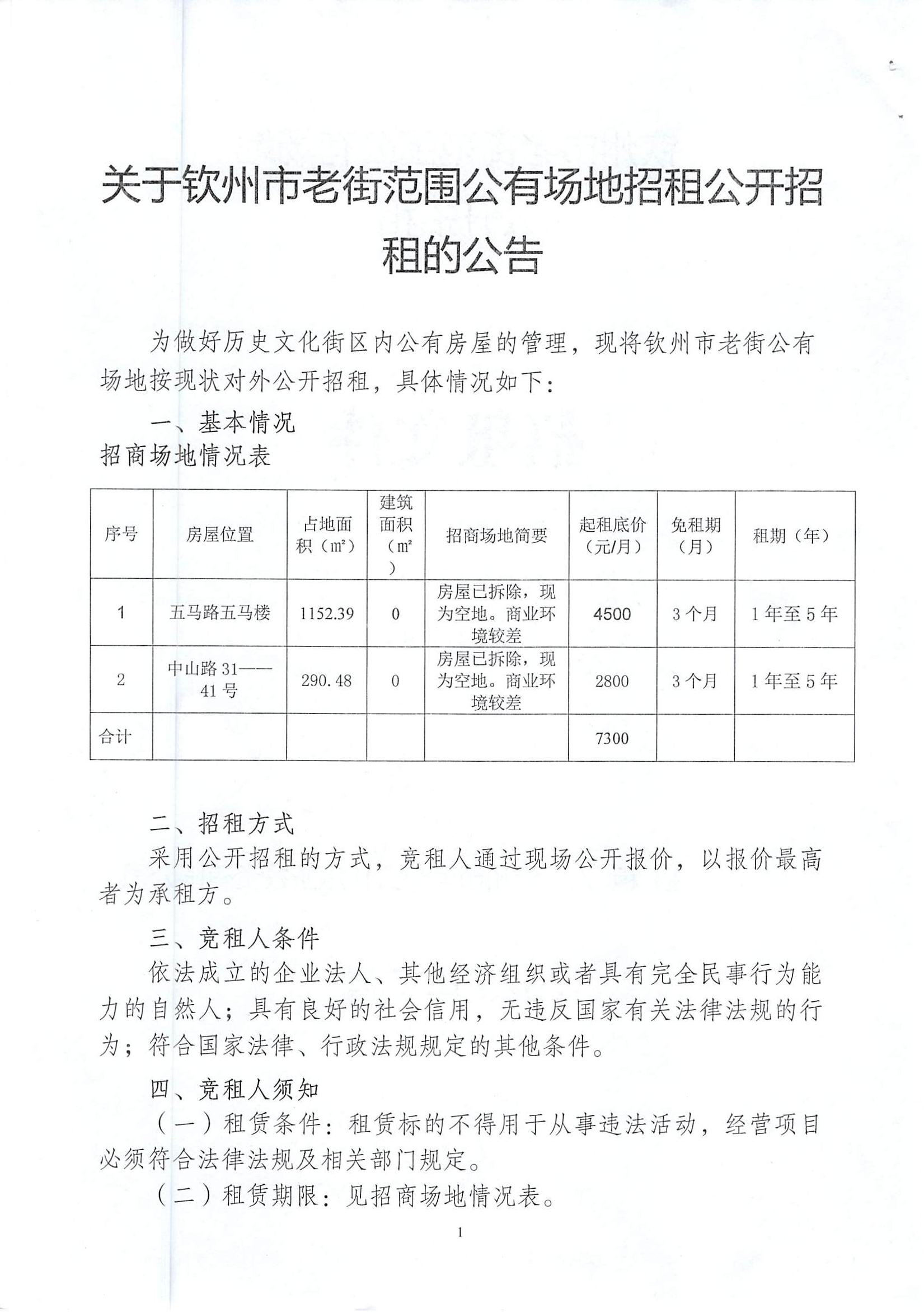 欽州市濱海文化旅游投資有限公司關(guān)于欽州市老街范圍11處房屋(場地)公開招租結(jié)果公示