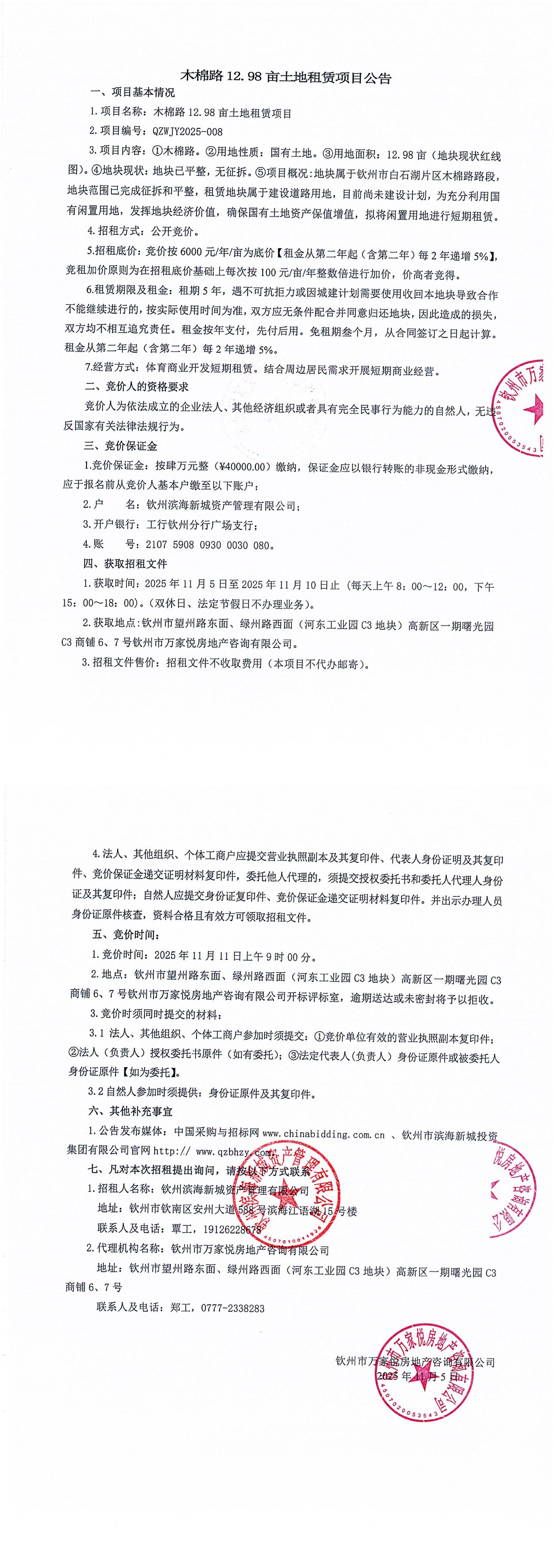 欽州市濱海文化旅游投資有限公司關(guān)于欽州市老街范圍房屋公開招租結(jié)果公示