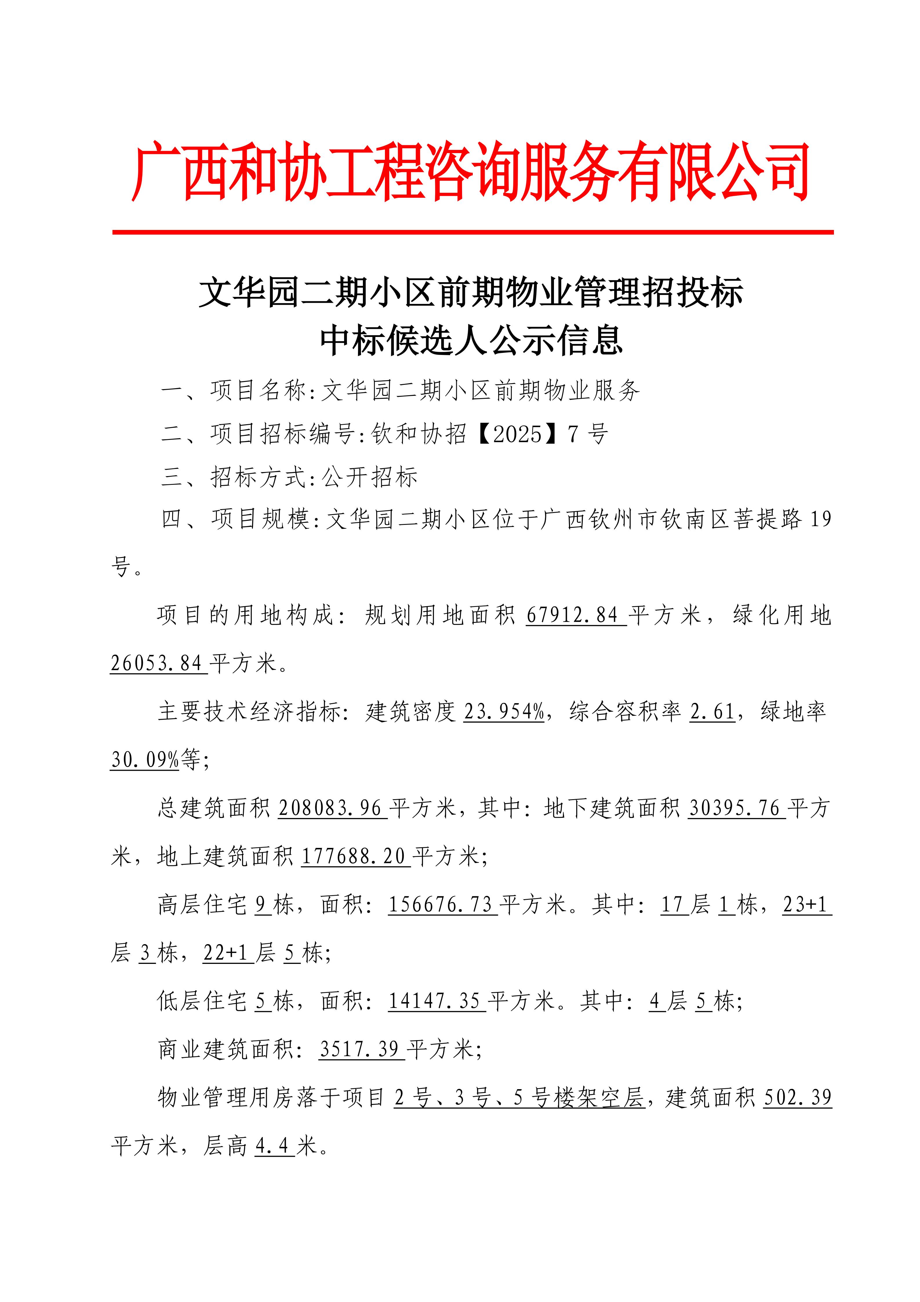 文華園二期小區(qū)前期物業(yè)管理招投標(biāo)中標(biāo)候選人公示信息