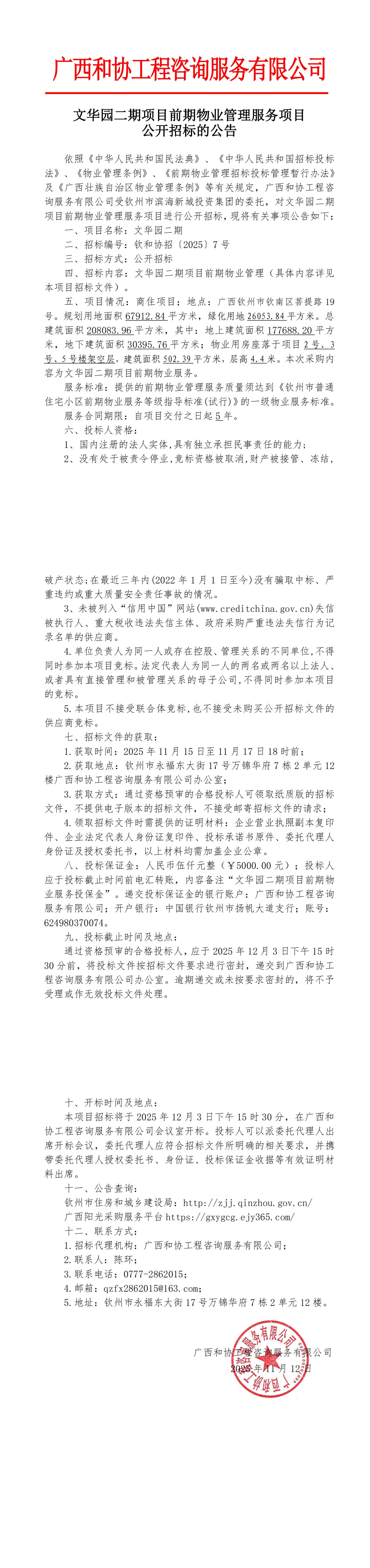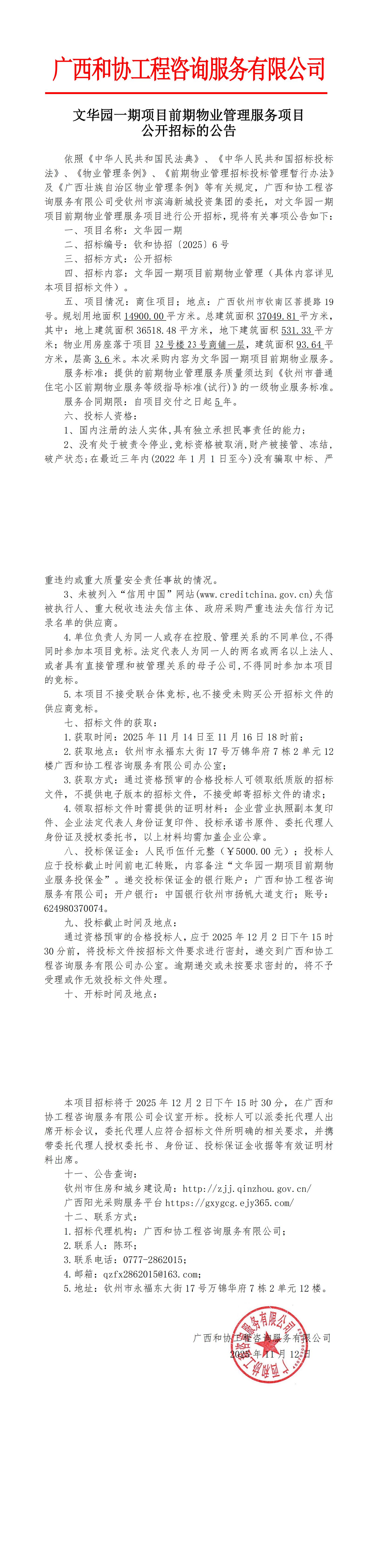 文華園一期項(xiàng)目前期物業(yè)管理服務(wù)項(xiàng)目公開招標(biāo)的公告