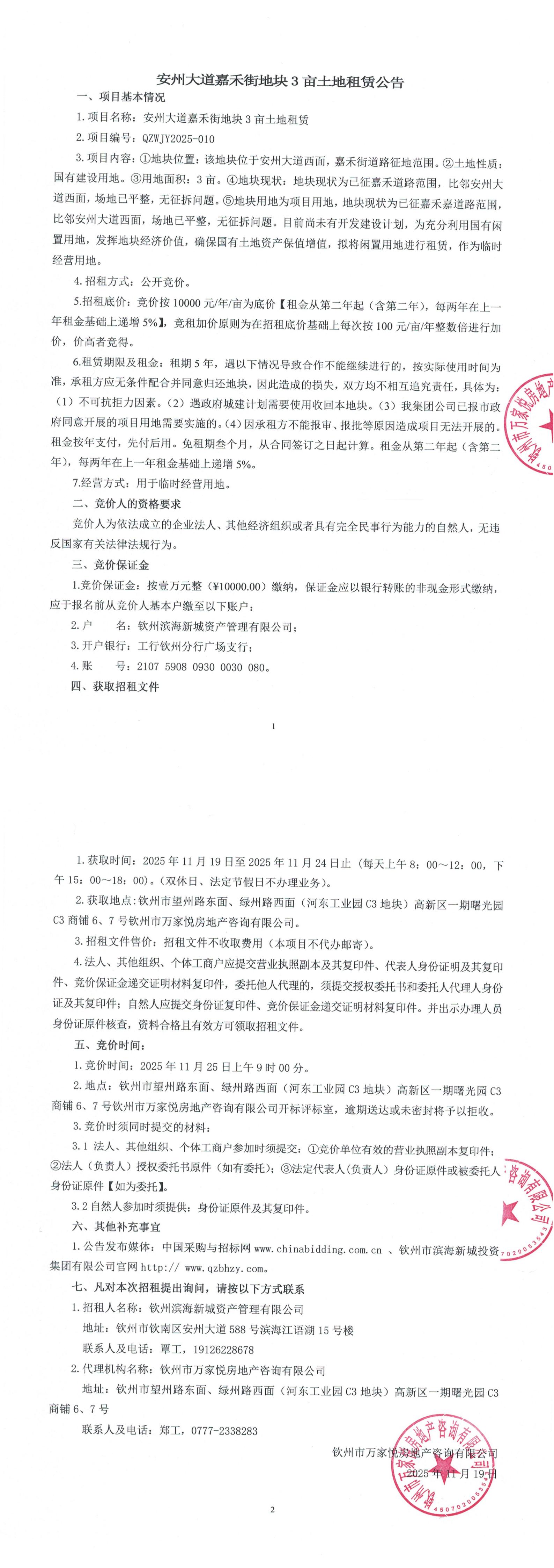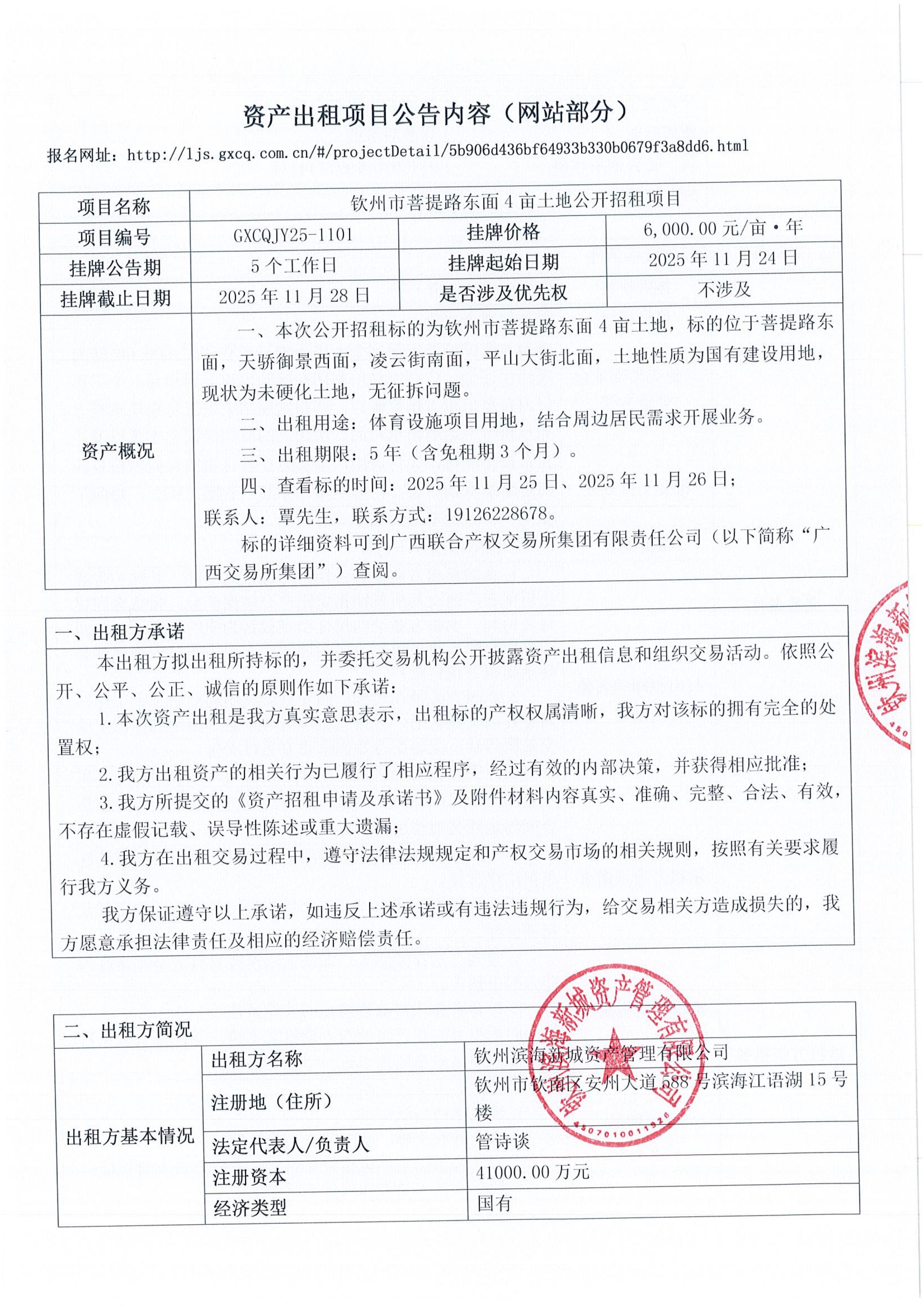 欽州市菩提路東面4畝土地公開招租項(xiàng)目