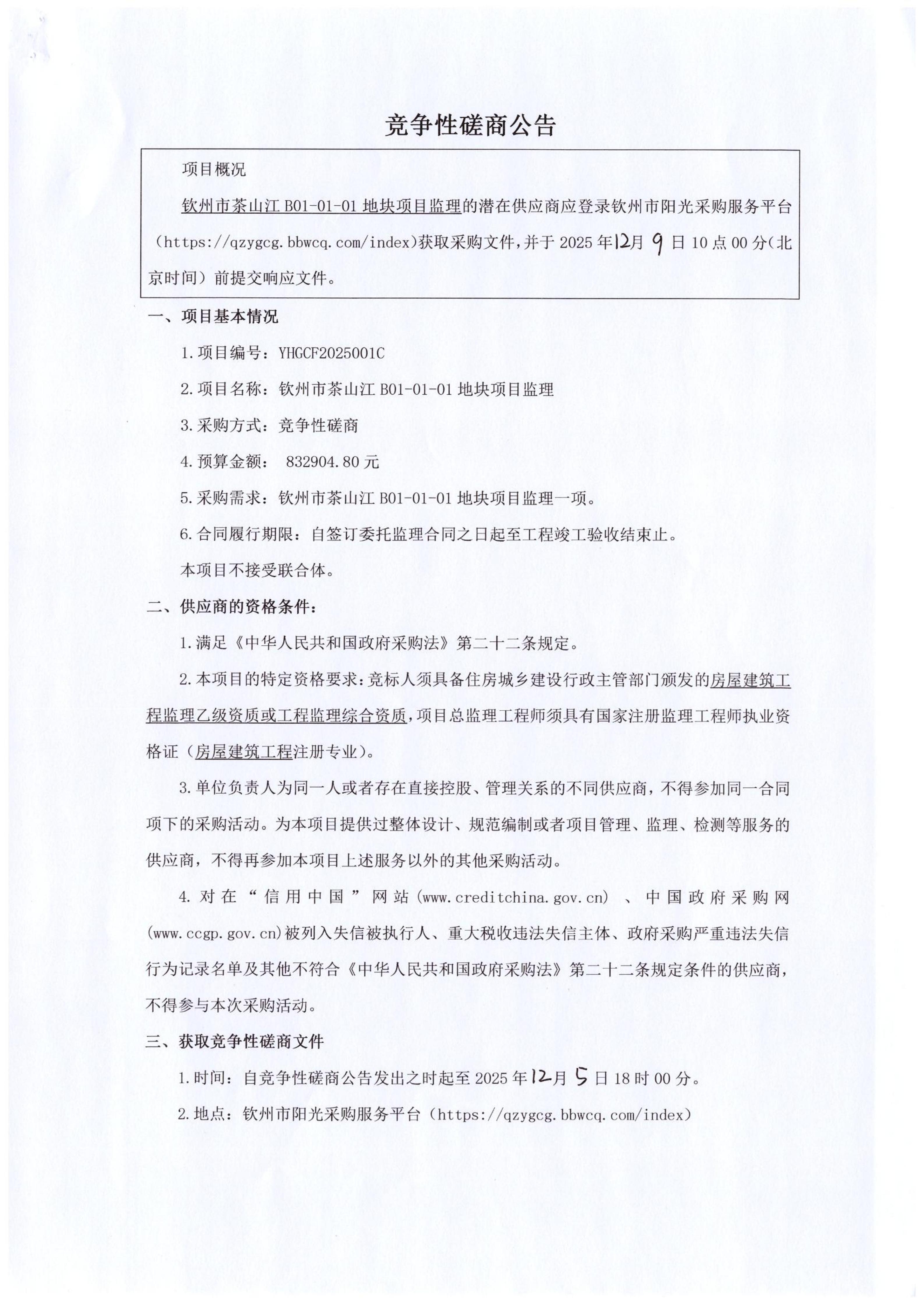 茶山江B01-01-01項(xiàng)目監(jiān)理競爭性磋商公告