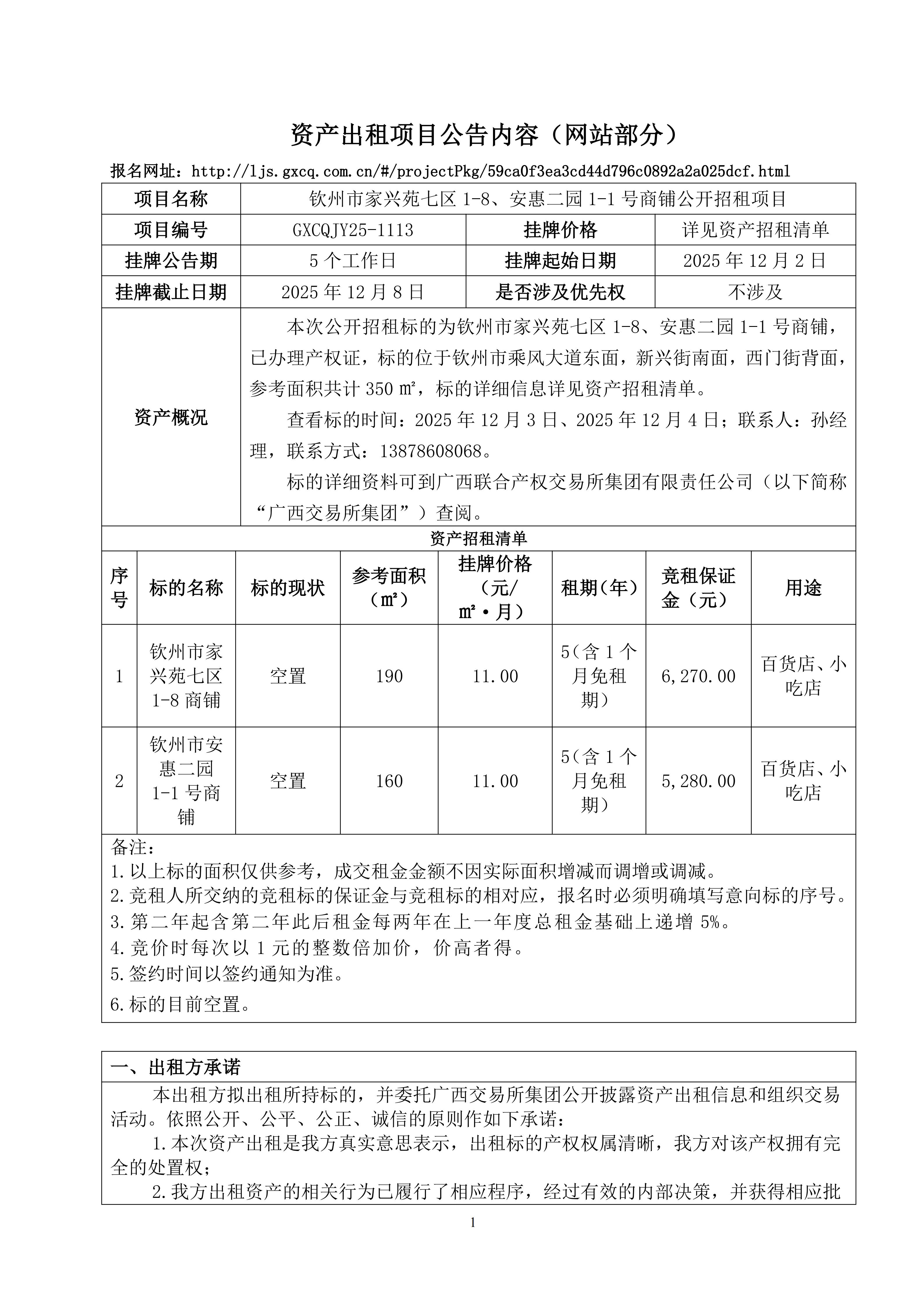 欽州市家興苑七區(qū)1-8、安惠二園1-1號(hào)商鋪公開招租項(xiàng)目