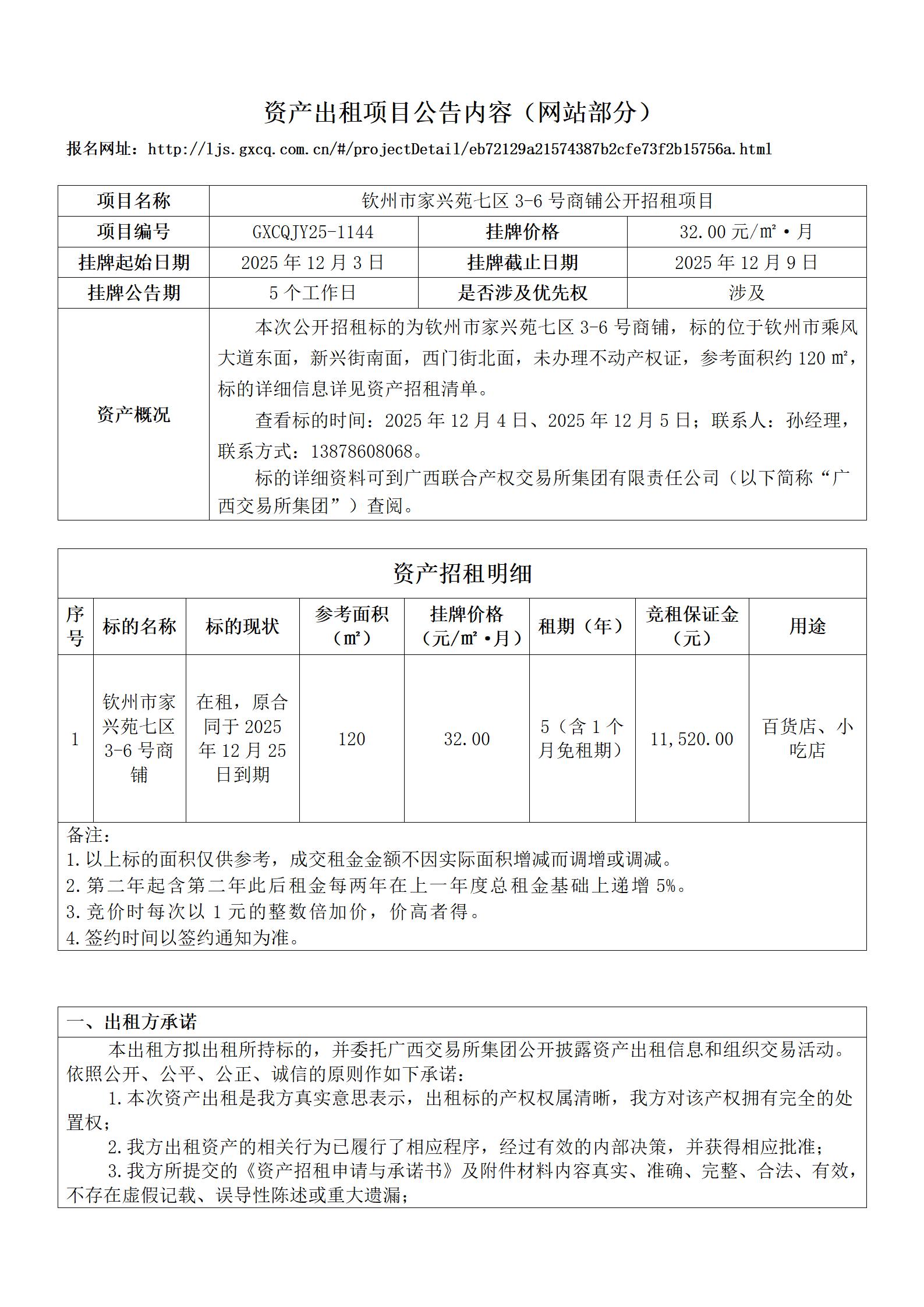 欽州市家興苑七區(qū)3-6號(hào)商鋪公開招租項(xiàng)目