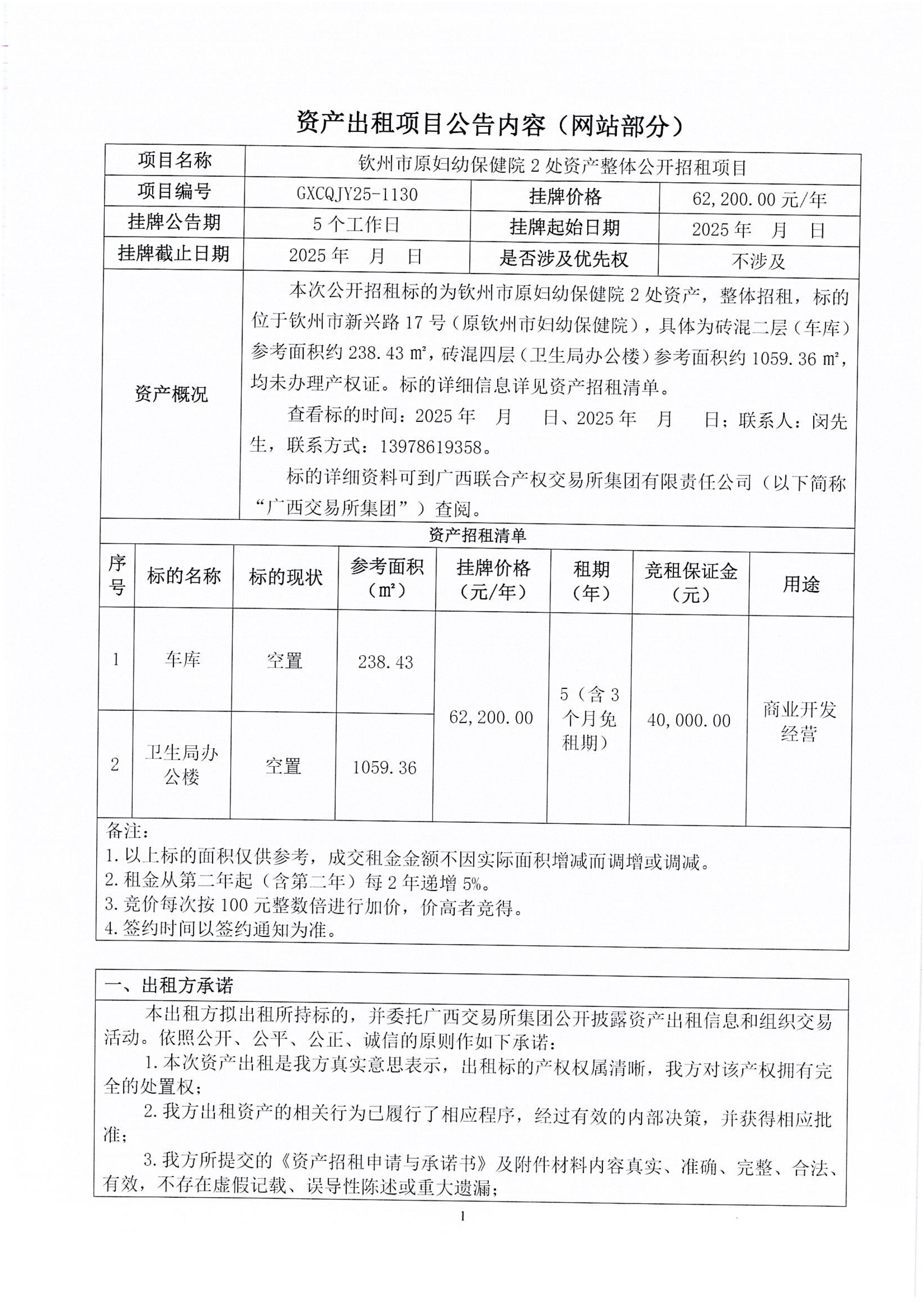 欽州市原婦幼保健院2處資產(chǎn)整體公開招租項(xiàng)目