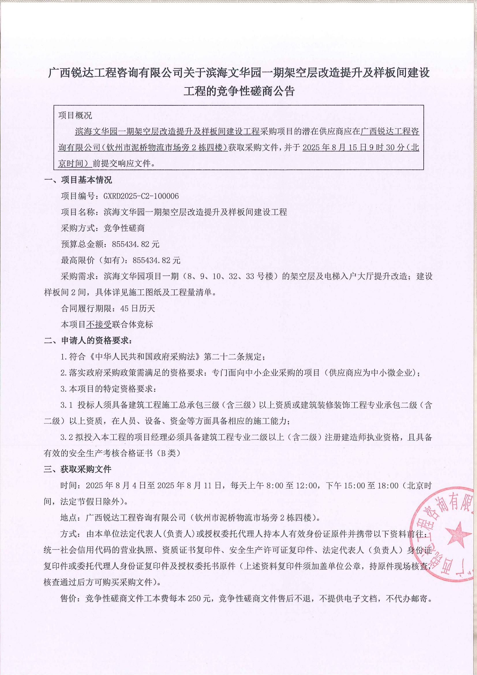 廣西建拓工程項(xiàng)目管理有限公司受欽州市濱海供應(yīng)鏈有限公司委托,現(xiàn)就賓陽(yáng)......