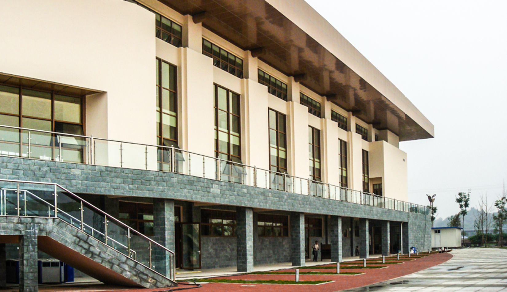 北川羌族自治縣體育中心位于新縣城南端的95 號街坊內(nèi),用地面積5.6 公頃,現(xiàn)狀地形平坦。北側(cè)為濱河路,毗鄰永昌河公園景觀帶,西側(cè)為禹龍路,隔路與安昌河相望,東側(cè)為貫穿新縣城的交通干道- 齊魯大道,用地四周環(huán)路,交通便利,地處北川新縣城的南門戶,是進入縣城的標志性建筑。