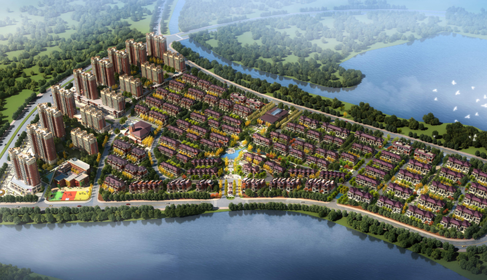 鄰水的景觀條件,合理布局高層與低密度住宅,并將公用空間、半公共空間與半私密空間、私密空間的巧妙搭配,融入到自·然環(huán)境之中,打造了各個不同特色的景觀節(jié)點。