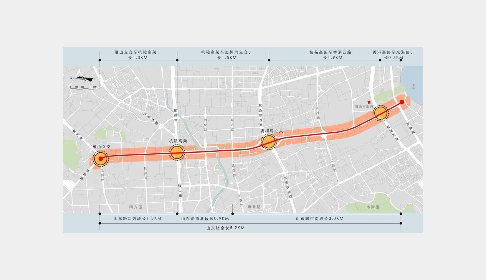 重點道路戶外廣告控制性導(dǎo)則規(guī)劃期限為2011—2020 年。規(guī)劃依據(jù)青島市城市總體規(guī)劃,結(jié)合城市用地現(xiàn)狀功能進行編制,并允許伴隨地塊功能變化進行調(diào)整,建議5 年修編一次。