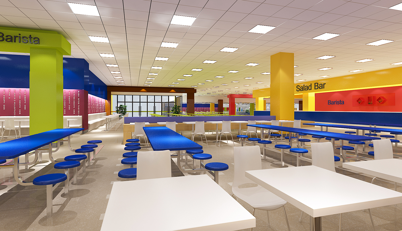 設(shè)計(jì)追求空間設(shè)計(jì)的前瞻性,深入揣摩材質(zhì)、工藝與造型之間的關(guān)系,力圖體現(xiàn)現(xiàn)代化小學(xué)空間輪廓;設(shè)計(jì)堅(jiān)持以“人”為本的校訓(xùn),強(qiáng)調(diào)人性化設(shè)計(jì),因此注重生態(tài)、綠色、節(jié)能、環(huán)保、文化空間功能,輔以材質(zhì)、色彩的表達(dá),為寧夏路小學(xué)營(yíng)造出了人性的、功能的、標(biāo)志化效果,為孩子創(chuàng)造-一個(gè)良好的視覺環(huán)境和心理健康發(fā)展的氛圍。