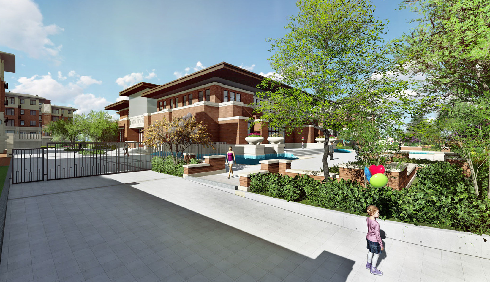 歸化傳統(tǒng)的學院文化,通過景觀空間的意境、景觀小品、標識系統(tǒng),鋪裝綠化等多種形式,回歸最本真和淳樸的生活。