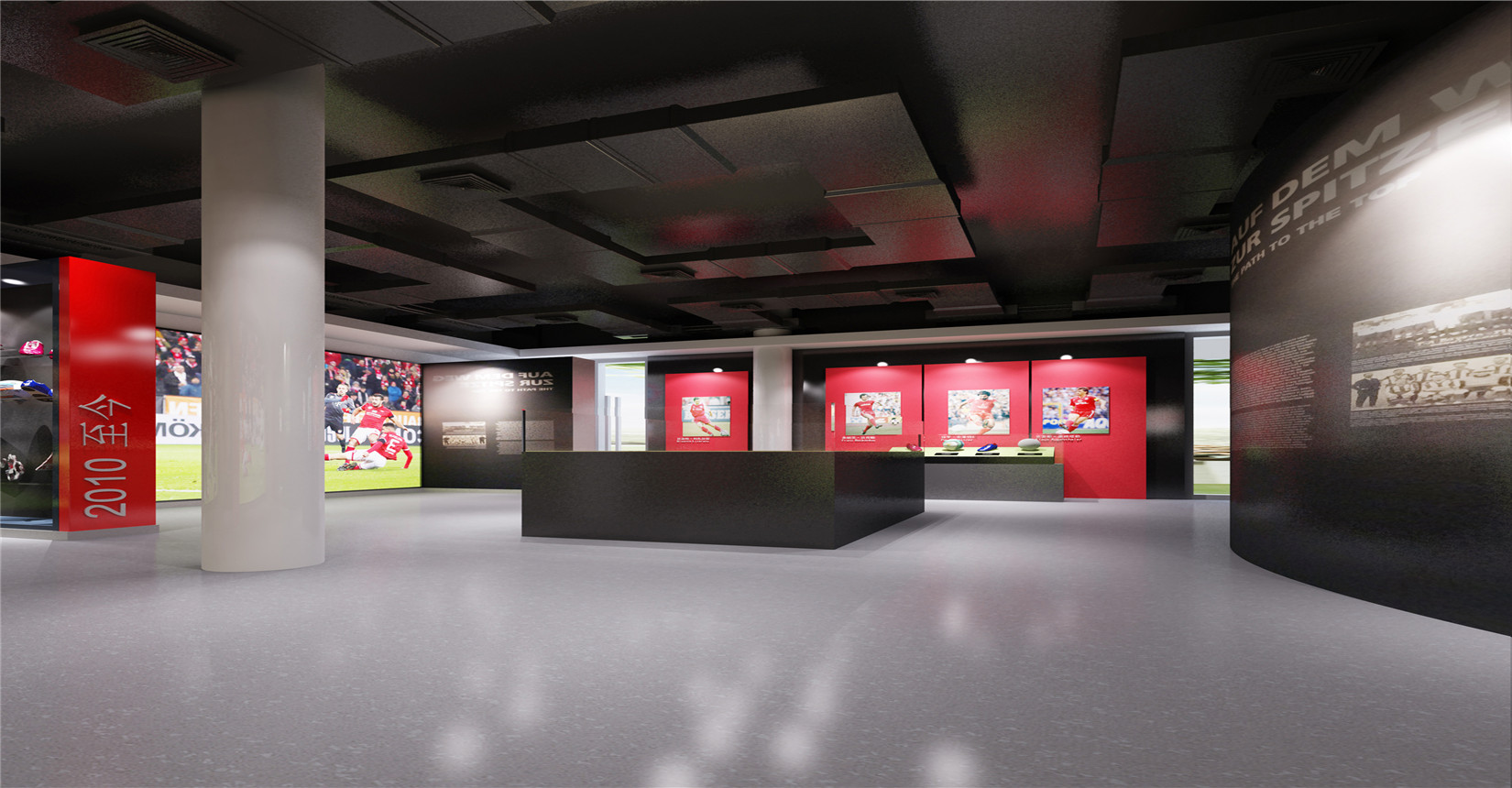 本次設(shè)計(jì)方案運(yùn)用后現(xiàn)代主義風(fēng)格的設(shè)計(jì)手法來(lái)展現(xiàn)中德兩國(guó)足球運(yùn)動(dòng)的歷史及發(fā)展。迎合當(dāng)前環(huán)境下中德兩國(guó)在足球產(chǎn)業(yè)方面進(jìn)行的交流與合作,是中德體育促進(jìn)足球培訓(xùn)、商務(wù)推廣的窗口平臺(tái),向人們展示足球精神的人文內(nèi)涵與魅力。
